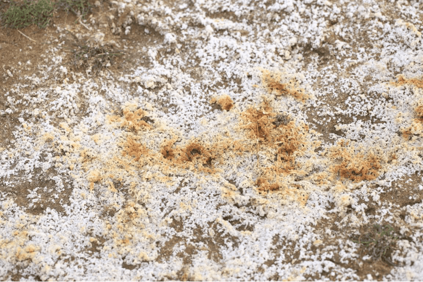 然而,实际上,这些砖厂并不具备危废处理资质。它们只是把一部分铜泥混进砖里,剩下的就堆放在砖厂。砖厂还放不下的铜泥,就随意堆放在村里的其他地区——以黄沙岗为代表的中转场就露天堆放了大量毒铜泥。